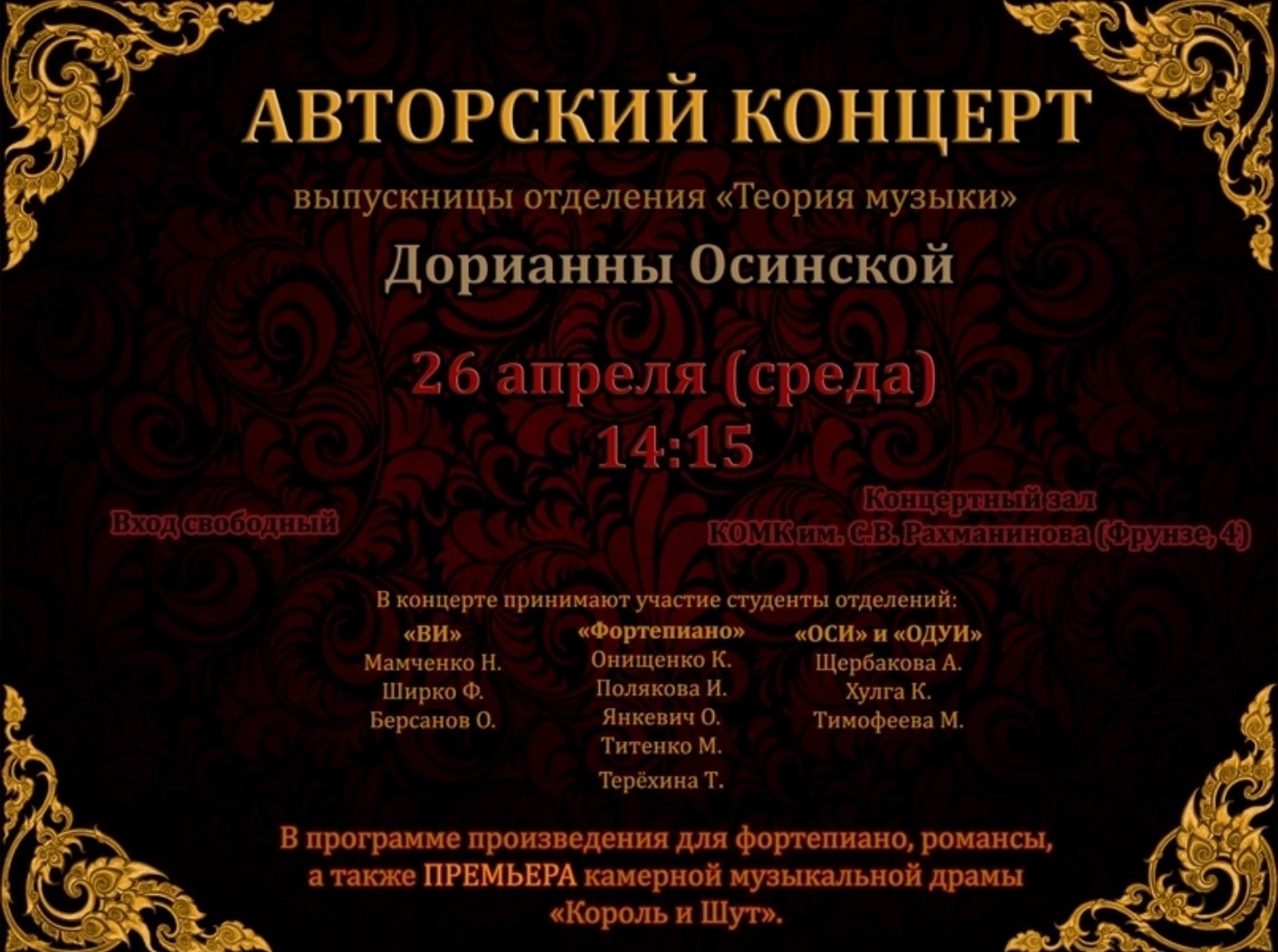 Авторский концерт Осинской Дорианны